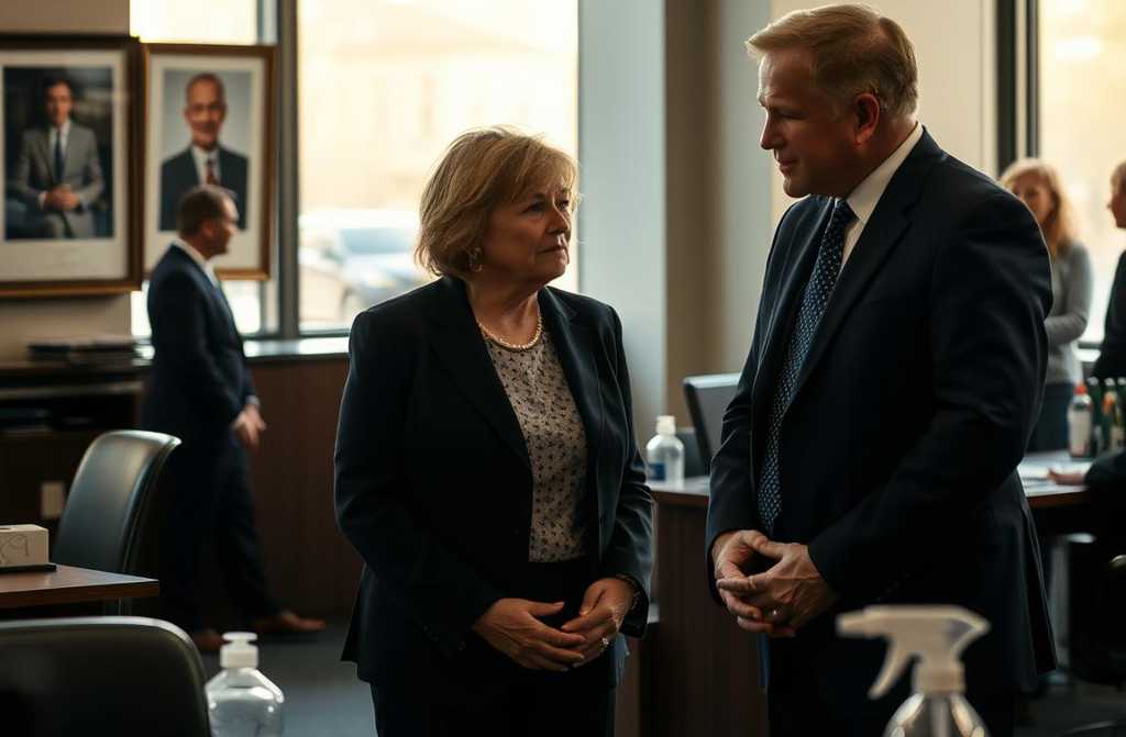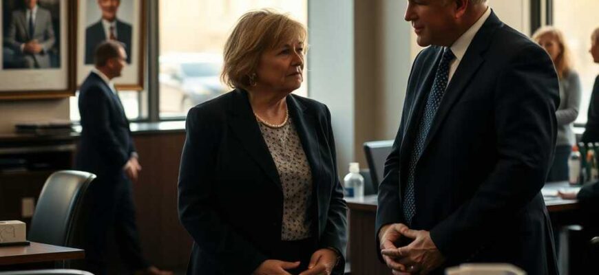 Poco después, entra en la oficina y se dirige a la recién llegada, que ya tiene cierta edad: