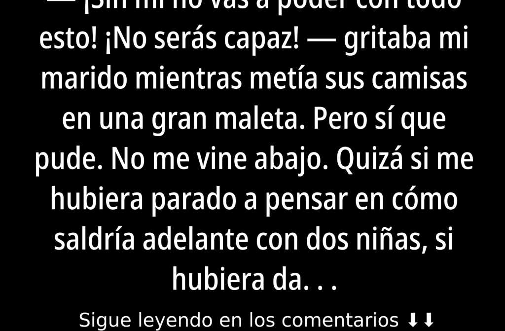 ¡Sin mí no vas a poder con todo esto! ¡No serás capaz! gritaba mi marido mientras metía sus camisas en una gran maleta.