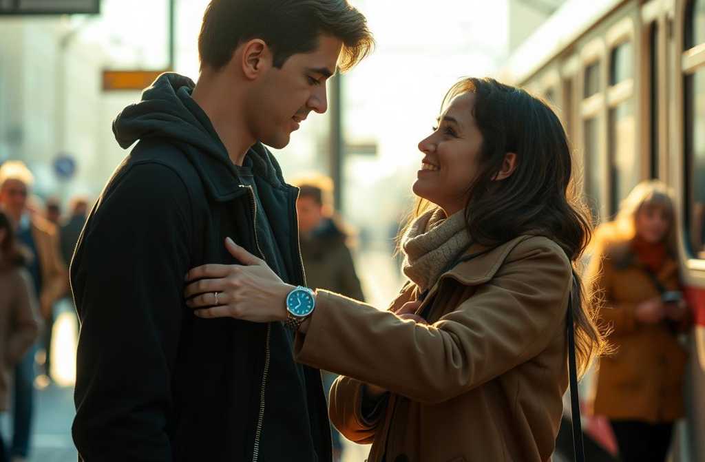 Justo delante de ella, un chico agarró el pasamanos, su chaqueta se levantó ligeramente, dejando al descubierto un reloj de pulsera con varias agujas y esferas.