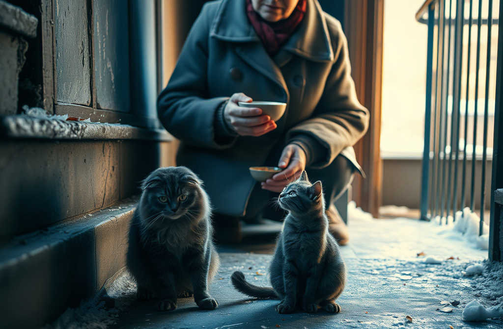 Ella sabía lo que era el hambre. Sus piernas, debilitadas por los años difíciles, apenas la sostenían, pero aún así subió a su piso y regresó con un plato de comida, agua y un chaleco de lana viejo y apolillado.