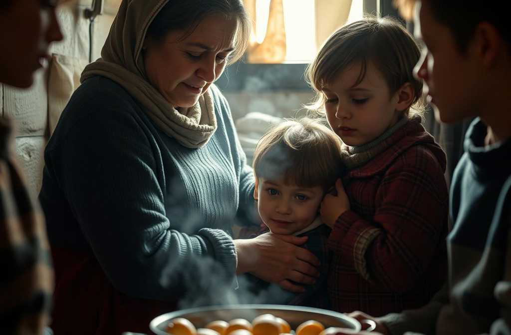La mujer forzó una sonrisa, pero su corazón se partía en dos. En la cocina, una pequeña olla de patatas hervía, y en el horno ardía la última leña del montón. Ana abrazó a sus hijos y rezó en silencio: