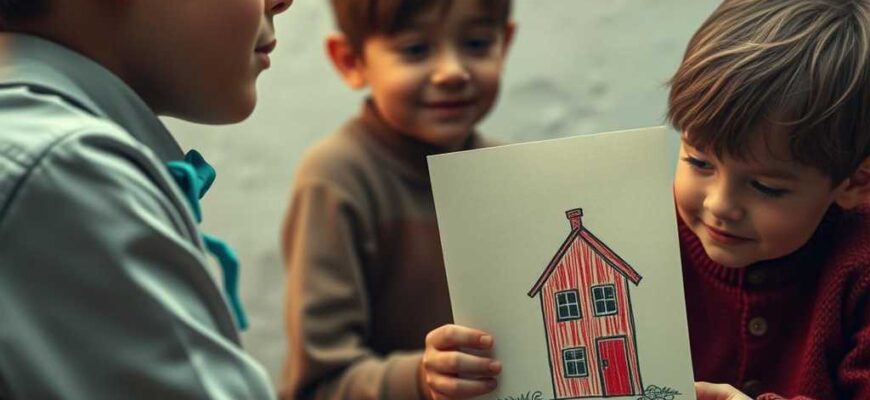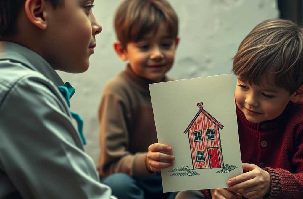 Pronto empezó a dibujar. Página tras página, siempre lo mismo: una casa con puerta roja, tulipanes en el jardín y hiedra trepando por la chimenea. Sus hermanos lo encontraban «guay». Él solo parecía triste, como si hubiera perdido algo valioso.