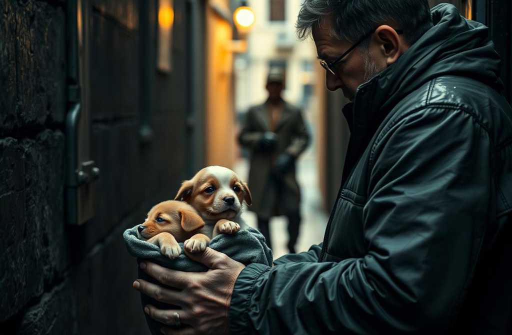 En el fondo del saco, amontonados en un pequeño torbellino tembloroso, yacían dos cachorros diminutos. Estaban ciegos, su pelaje estaba húmedo y cubierto de barro, pero vivían. Sus diminutos cuerpos subían y bajaban al ritmo de su respiración. Con el corazón latiendo desbocado, tomé uno en la palma de la mano; era frágil y vulnerable. Luego, con cuidado, recogí al segundo y los abracé contra mi pecho, bajo la chaqueta, intentando darles calor. Sentí sus pequeños latidos sincronizarse con el mío, como si fueran una extensión de mi propio pecho.