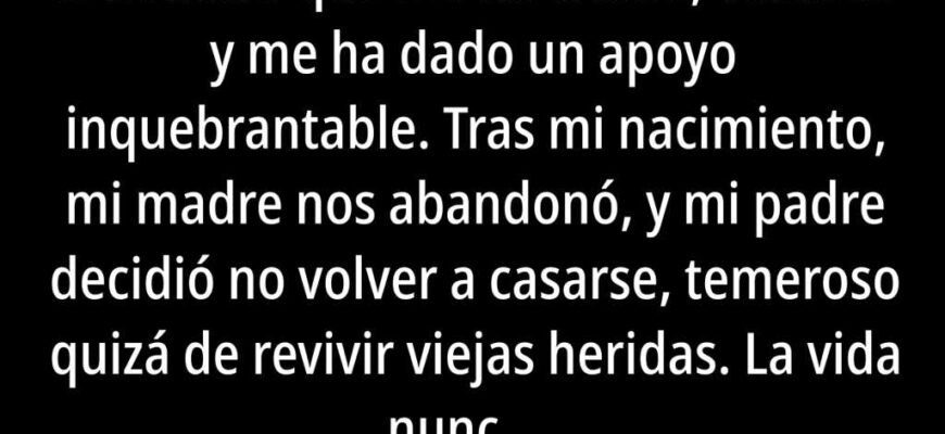 Mi familia gira alrededor de mi padre, el hombre que me ha criado, cuidado y me ha dado un apoyo inquebrantable. Tras mi nacimiento, mi madre nos abandonó, y mi padre decidió no volver a casarse, temeroso quizá de revivir viejas heridas. La vida nunca fue indulgente con él, y yo deseaba crecer cuanto antes para poder estar a su lado y ayudarle en todo lo que necesitara como hombre responsable.