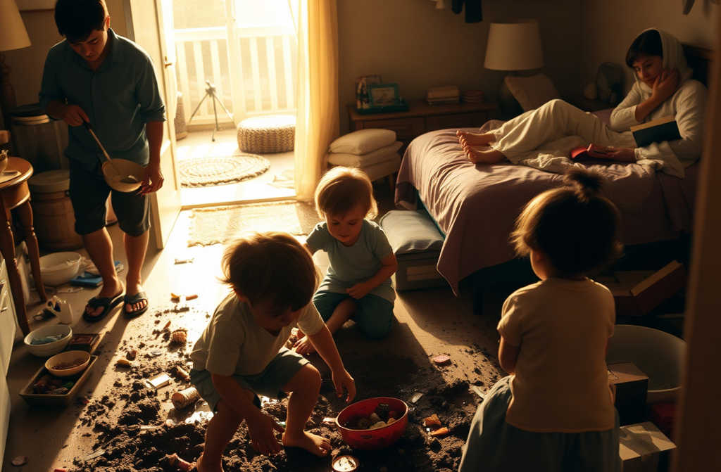 Javier entró en la casa, esquivando juguetes y restos de comida. El salón era un desastre: la lámpara del techo estaba torcida, la alfombra arrugada y la televisión emitía dibujos animados a todo volumen. En la cocina, los platos sucios se acumulaban en el fregadero, la nevera permanecía abierta y la comida de Roco estaba esparcida por el suelo. Un vaso roto brillaba bajo la mesa.