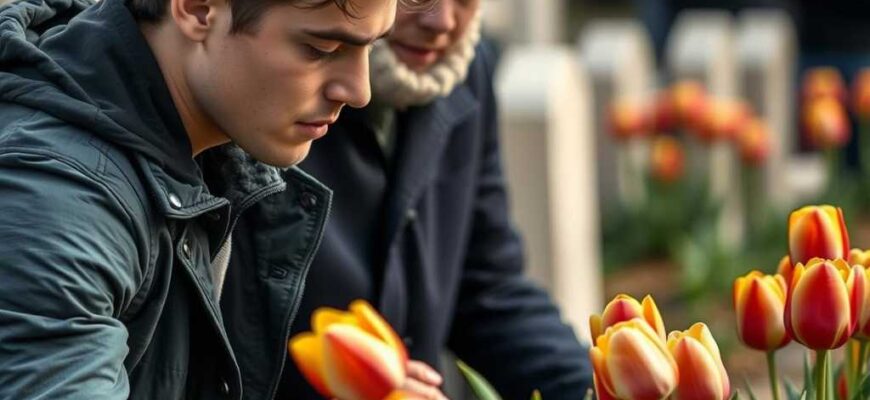 El taxi se detuvo frente a la entrada del cementerio. Un joven bajó y se acercó al puesto de flores donde una mujer atendía.
