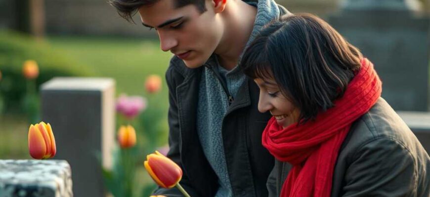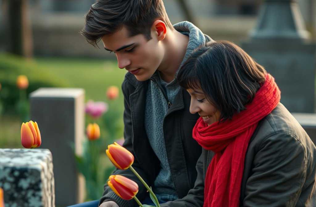 Una vez más calmada, la mujer le ayudó a colocar las flores. Permanecieron en silencio mucho rato, hasta que ella preguntó: