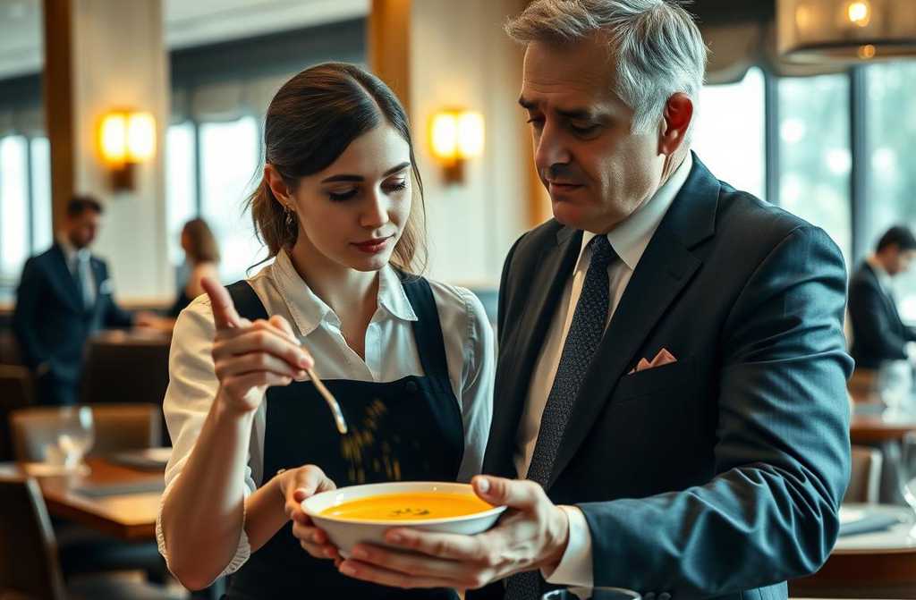“¡Niña, ¿te das cuenta de lo que has hecho?!”, gritó Ramón agitando un cucharón. “¡Sopa en el suelo, el cliente manchado, y tú ahí quieta como una estatua!”