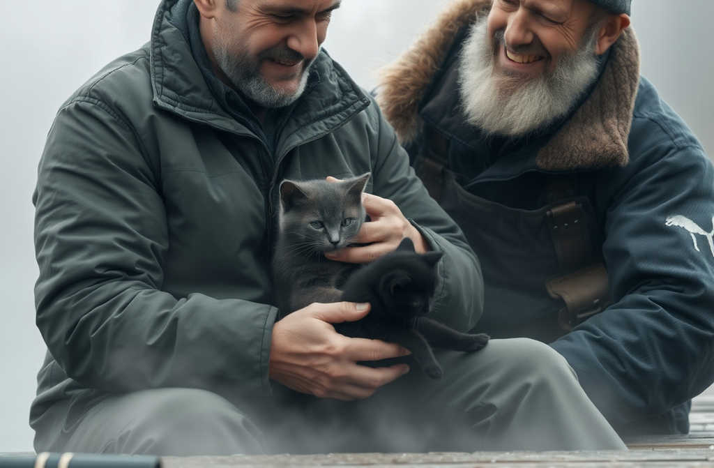 Y el gato gris apareció temblando, acurrucado a mis pies, maullando débilmente. Lo atrapé y corrí hacia el bote. Cuando ya estaba subiendo, el hombre de botas abrió los ojos como platos y, justo entonces