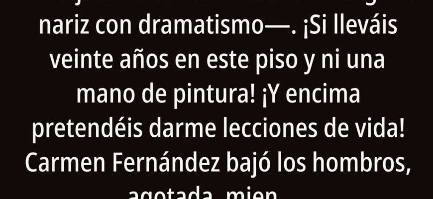 Carmen Fernández bajó los hombros, agotada, mientras Tomás Esteban sorbía un sorbo de su café mirando a ninguna parte, sin atreverse a sostenerle la mirada a su hija. Marina seguía plantada en medio de la cocina, con las mejillas encendidas de enfado, esperando alguna reacción. Pero sus padres guardaban silencio, y ese mutismo la sacaba aún más de quicio que cualquier reproche.