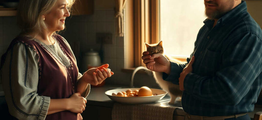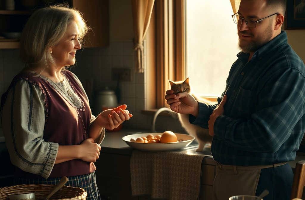 No tiene tiempo para pensar en la soledad, porque la granja le espera: un corral lleno de gallinas, patos y gansos, una vaca llamada Lola que mugía en el establo y, bajo sus pies, un gato llamado Mimo se enreda entre las patas. Mientras todos estén satisfechos, alimentados y limpios, el día pasa sin quejas.
