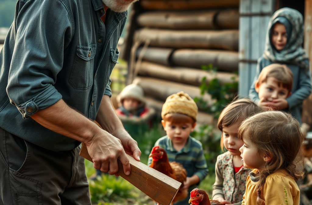 Martita se sentó en los escalones, observando cómo Javier daba agua a los pollos. Por primera vez pensó: “No quiere reemplazar a papá. Solo quiere estar aquí”.